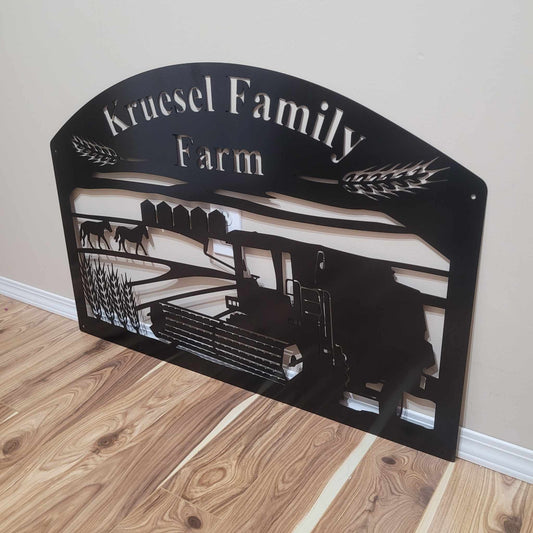 Rustic Arch-Top Rectangle Metal Sign With Combine and Horses
