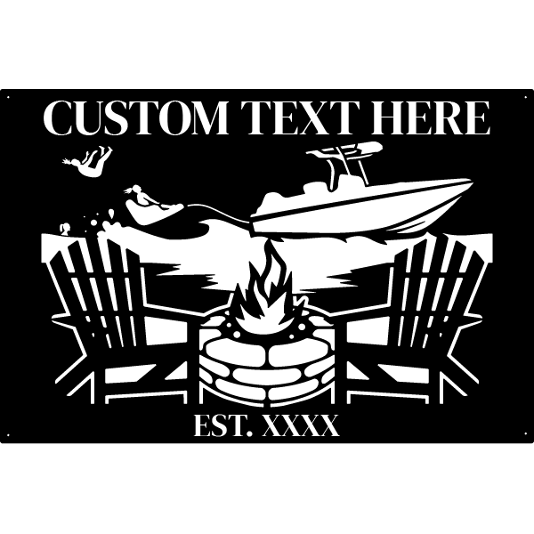 Rustic Rectangle Lake Sign with Tubing and Campfire